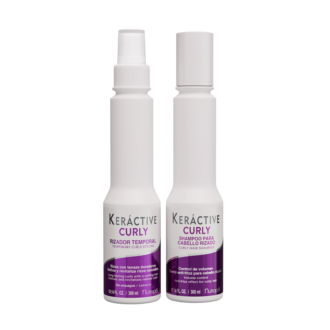 Shampoo Keráctive Curly + rizador temporal: rizos definidos, sin frizz, hidratados, brillantes y duraderos. ¡Control total con acabado perfecto!