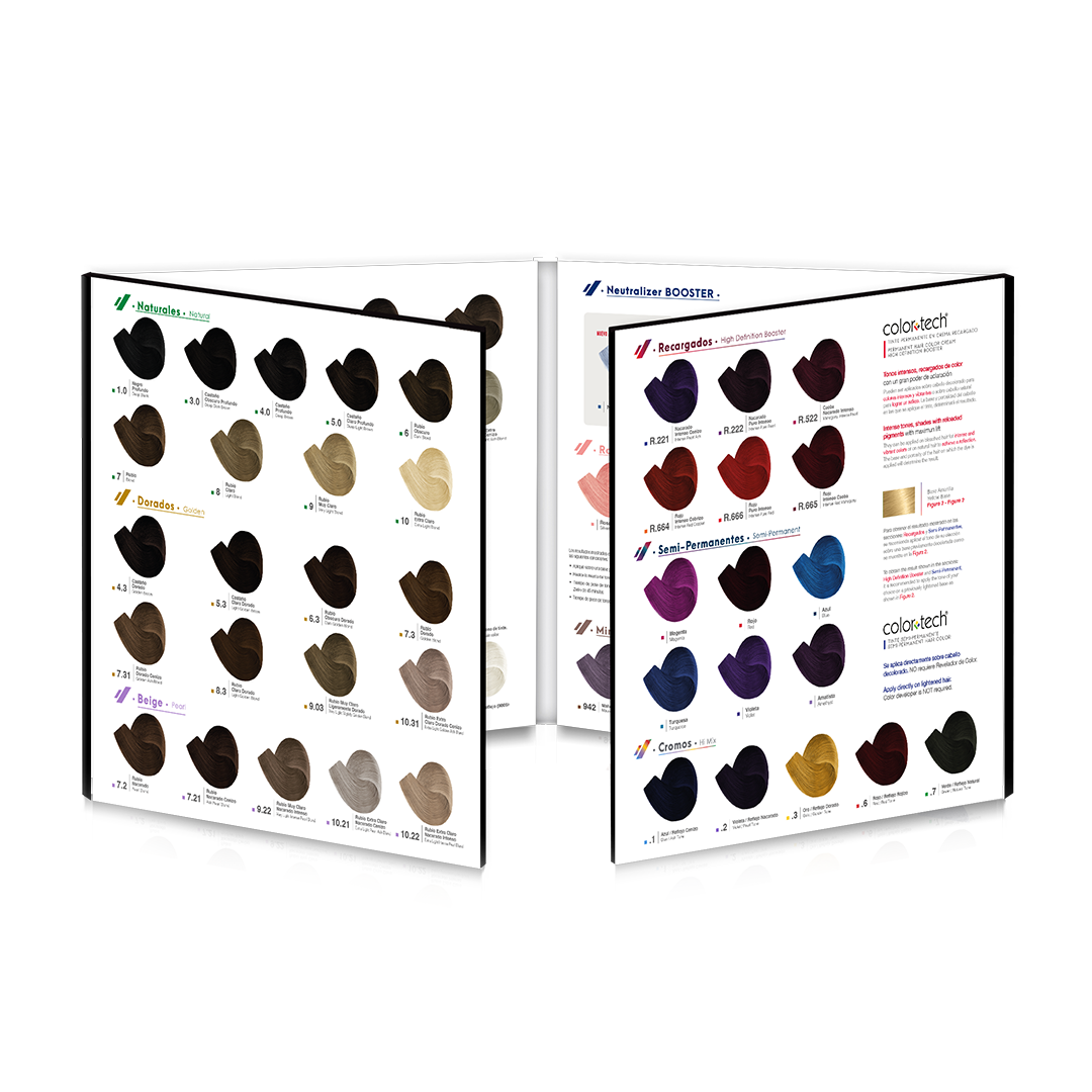 Amplia gama de Tintes Colortech con 100 tonos definidos y de larga duración que incluyen Tintes Permanentes y Tintes Semi-Permanentes.