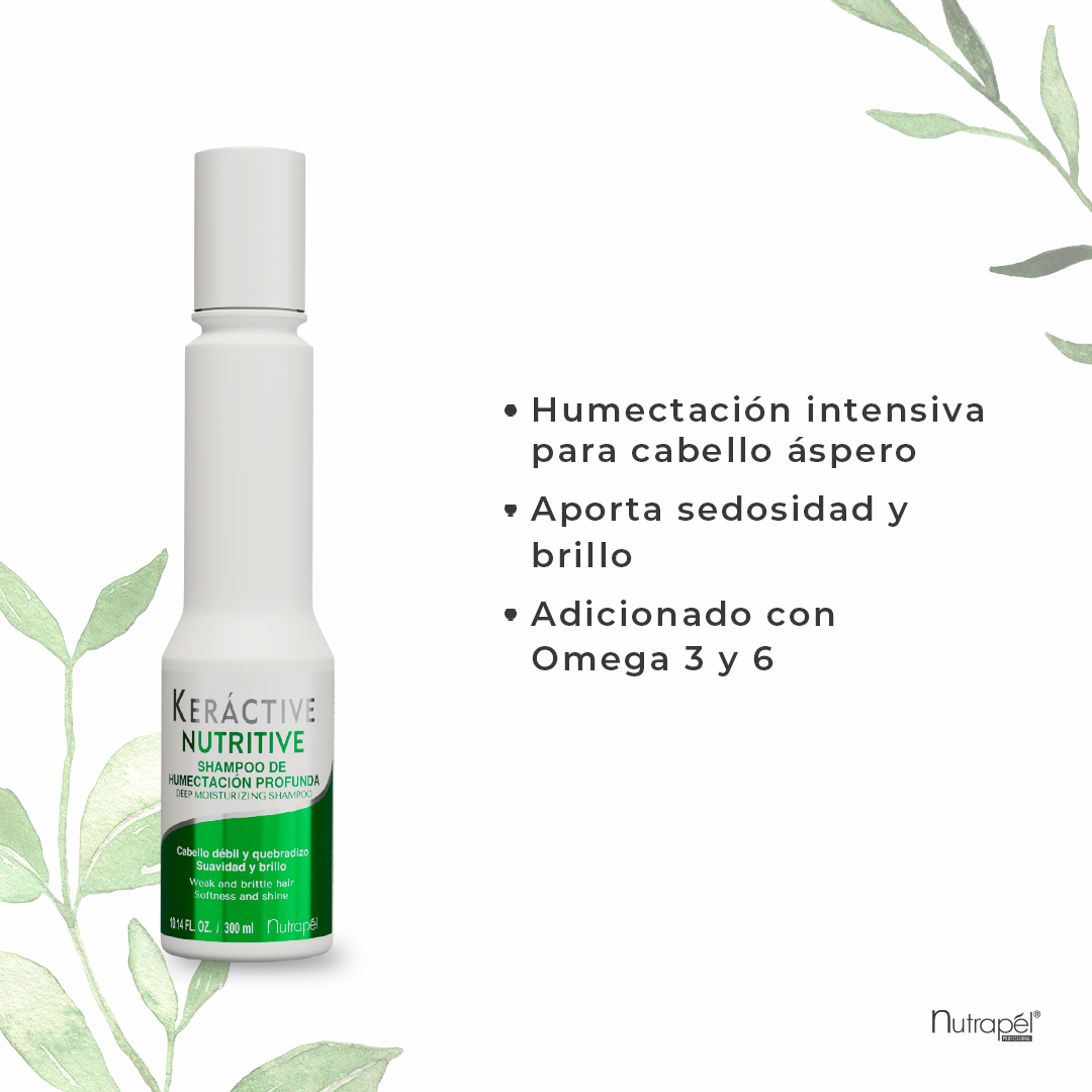 Contiene ingredientes naturales que hidratan profundamente, restaurando la vitalidad y el brillo del cabello deshidratado.